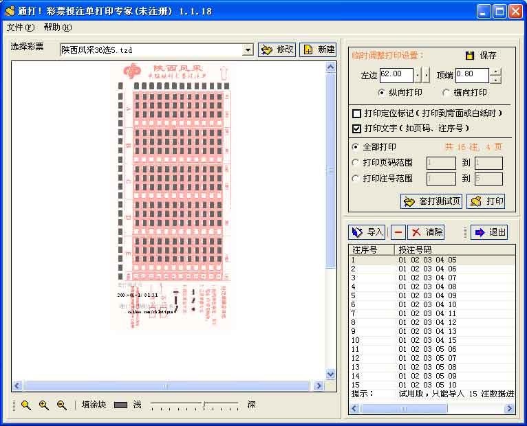 - 投注单页码、注序号、日期的打印,使您在使用中更为方便(比如按顺序进行查找等)